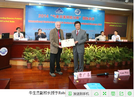 开幕式上,牛生杰副校长为Donald Rubin教授授予我校荣誉教授证书,并代表学校对Rubin院士等海内外专家学者的莅临表示热烈欢迎,对会议的举行表示热烈祝贺。他向来宾介绍了学校近年来的发展情况以及作为“联合国世界气象组织区域培训中心”在加强国际气象人才培养、推进国际气象学术交流等方面发挥的积极作用。他希望与会的国内外专家学者借助本次学术交流平台,积极加强在气象灾害风险管理学术领域的研讨、交流与合作,共同推进、提升有关学科的研究水平。