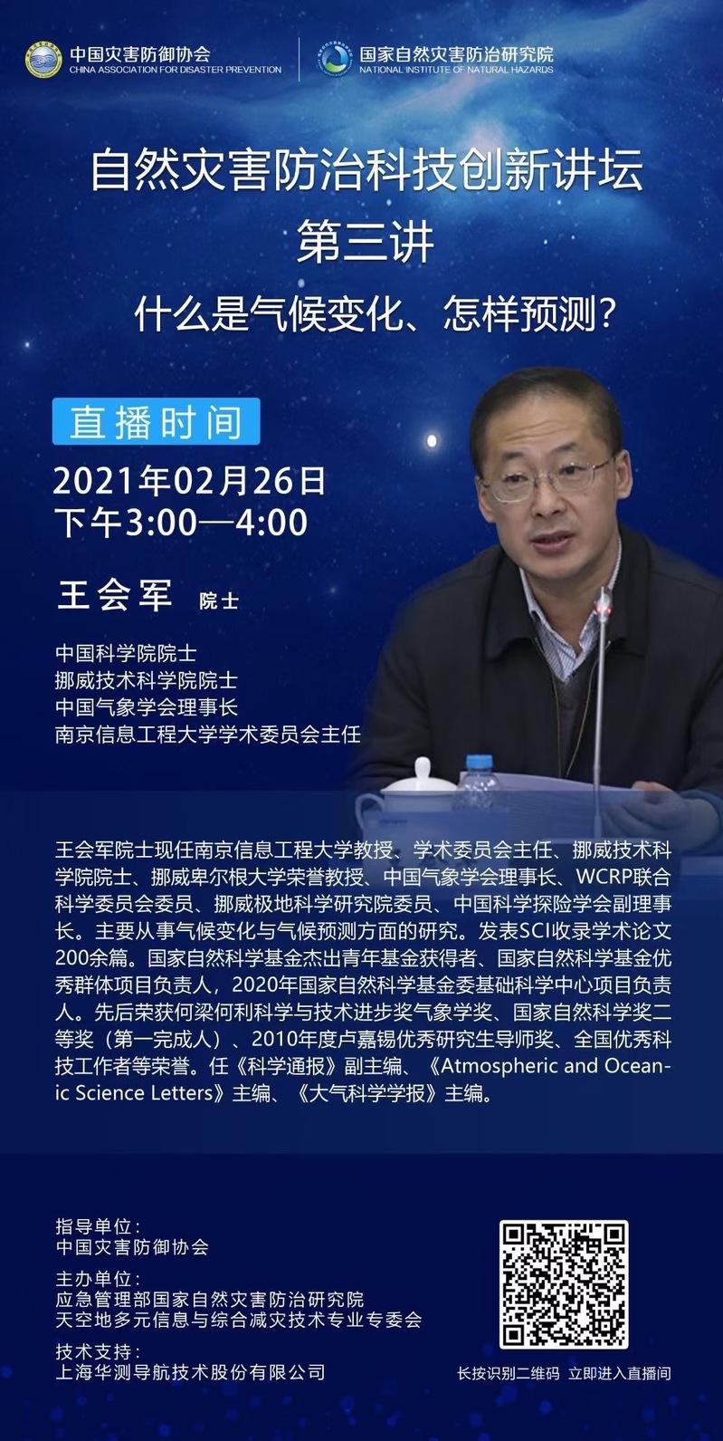 国家自然灾害防治研究院特邀我中心主任王会军院士作报告