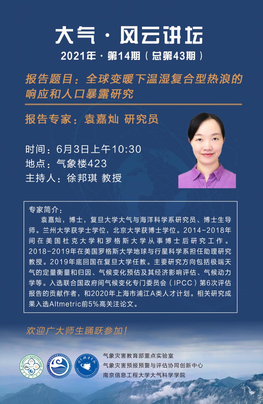 特邀复旦大学袁嘉灿研究员来校作学术报告——大气•风云讲坛(2021年第14期)