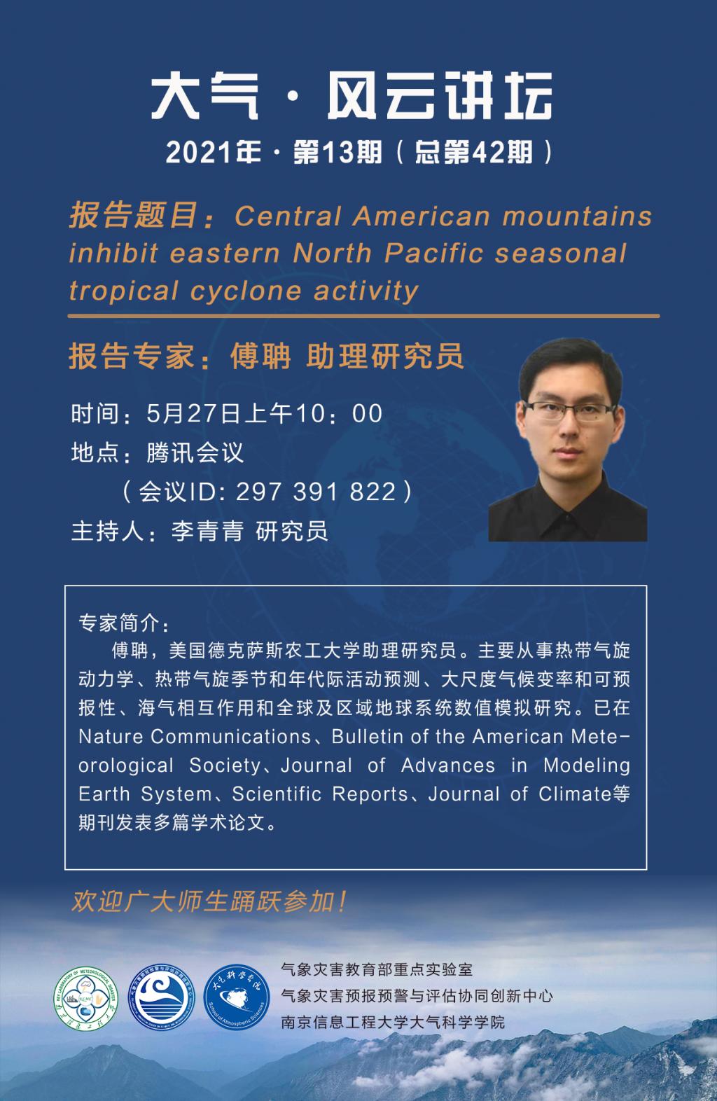 特邀美国德克萨斯农工大学助理研究员傅聃博士线上作学术报告——大气•风云讲坛(2021年第13期)