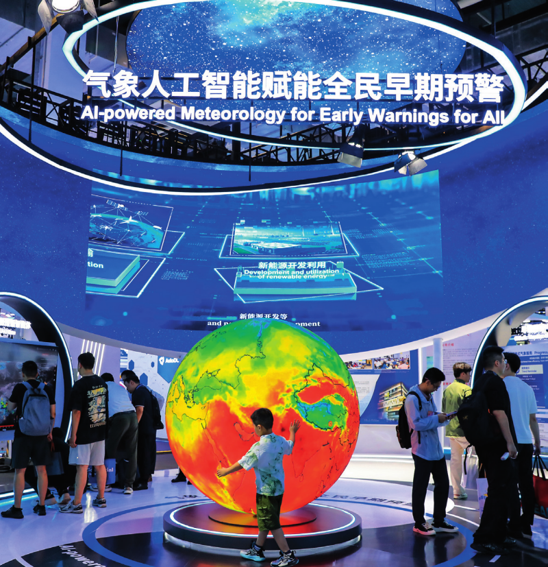 在上海举办的2025 世界人工智能大会上展出的天气预报大模型(2025 年 7 月 27 日摄) 图片来源 :视觉中国